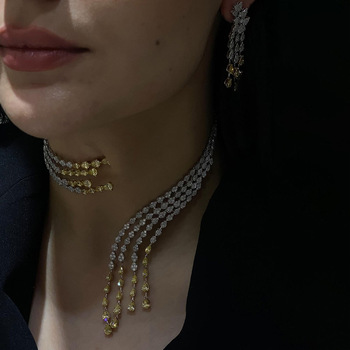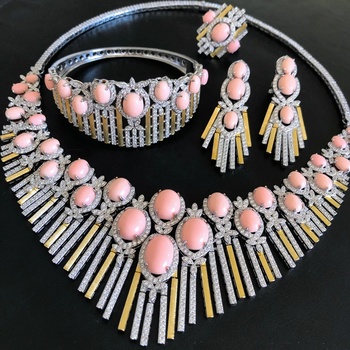ชุดเครื่องประดับชุบทองลายดอกหรูหราทันสมัยสำหรับงานแต่งงานของผู้หญิงเครื่องประดับเซอร์คอนสำหรับเจ้าสาว