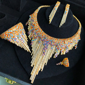 ชุดเครื่องประดับปาร์ตี้งานแต่งงานแอฟริกัน/อินเดียสุดหรูสำหรับผู้หญิงชุดเครื่องประดับเซอร์คอนคริสตัลดูไบสำหรับเจ้าสาวแบรนด์ดังของขวัญจากทองเหลืองจาก T128F