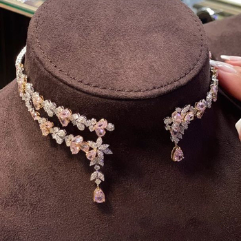 T114C Conjunto de joyería de boda de diseñador de gama alta 4 piezas Flores de circón de Nigeria Italiano Brasil Oro-Collar de moda al por mayor