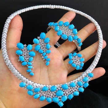 Amuletos de gota de agua, 4 Uds., conjunto de joyería nigeriana de lujo para mujer, boda, circonita cúbica, collar de novia de Dubái, pendiente, brazalete, anillo, conjunto