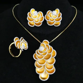 H269ANew gioiello placcato in oro fiore di lusso alla moda per le donne festa di nozze zircone gioielli da sposa
