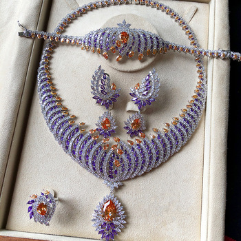 T128f יוקרה אפריקאי/הודי מסיבת חתונה סטים תכשיטים לנשים זירקון קריסטל dubai שמלת תכשיטים סט מותג מפורסם פליז מתנה