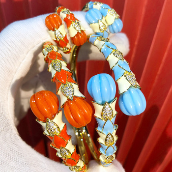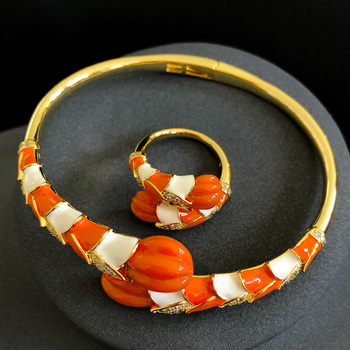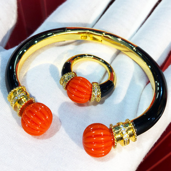 H028Eラグジュアリー2pcゴールドオレンジブレスレットリングイヤリングセットブラスウェディングブライダル女性向けパーティー用アフリカ/インド/ドバイスタイル