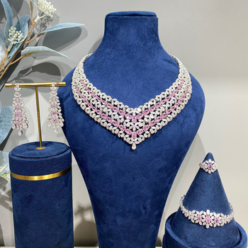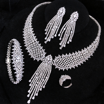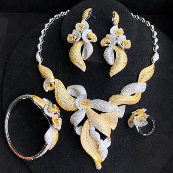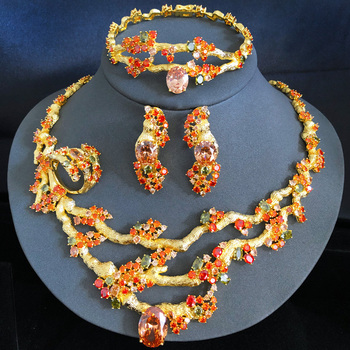 T413Aユニークな高級ドバイブライダルウェディングイブニングパーティーセット女性用マルチキュービックジルコンツリーブランチネックレスイヤリング記念日