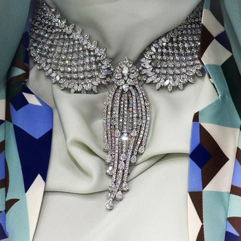 T262E Luxury Brass Gold Plated 2 Tone Tassels Crown African Sets Women Wedding Full Micro Cubic Zirconia Necklace Earring Sets
