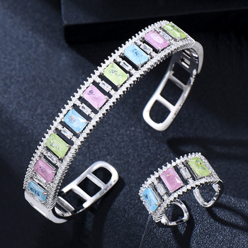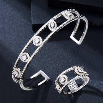 H187A แหวนกำไลข้อมือสุดโรแมนติกอินเทรนด์ชุดเครื่องประดับ2ชิ้นใหม่ขายดีคุณภาพสูงชุดเครื่องประดับงานแต่งงานแวววาวของขวัญแฟชั่นผู้หญิงสุดฮอต