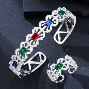 เซ็ตลูกบอลเพทายลายลูกบาศก์ทรงหยดน้ำแบบใหม่ T117B ชุดปาร์ตี้วันครบรอบงานหมั้นของผู้หญิงทำจากทองแดงทำมือสไตล์แอฟริกันอินเดีย